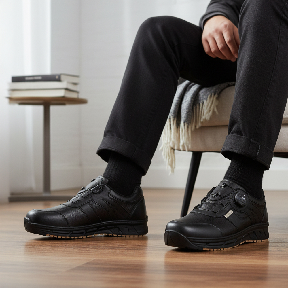We use only our patented mogul-pattern natural rubber outsole for superior slip resistance.